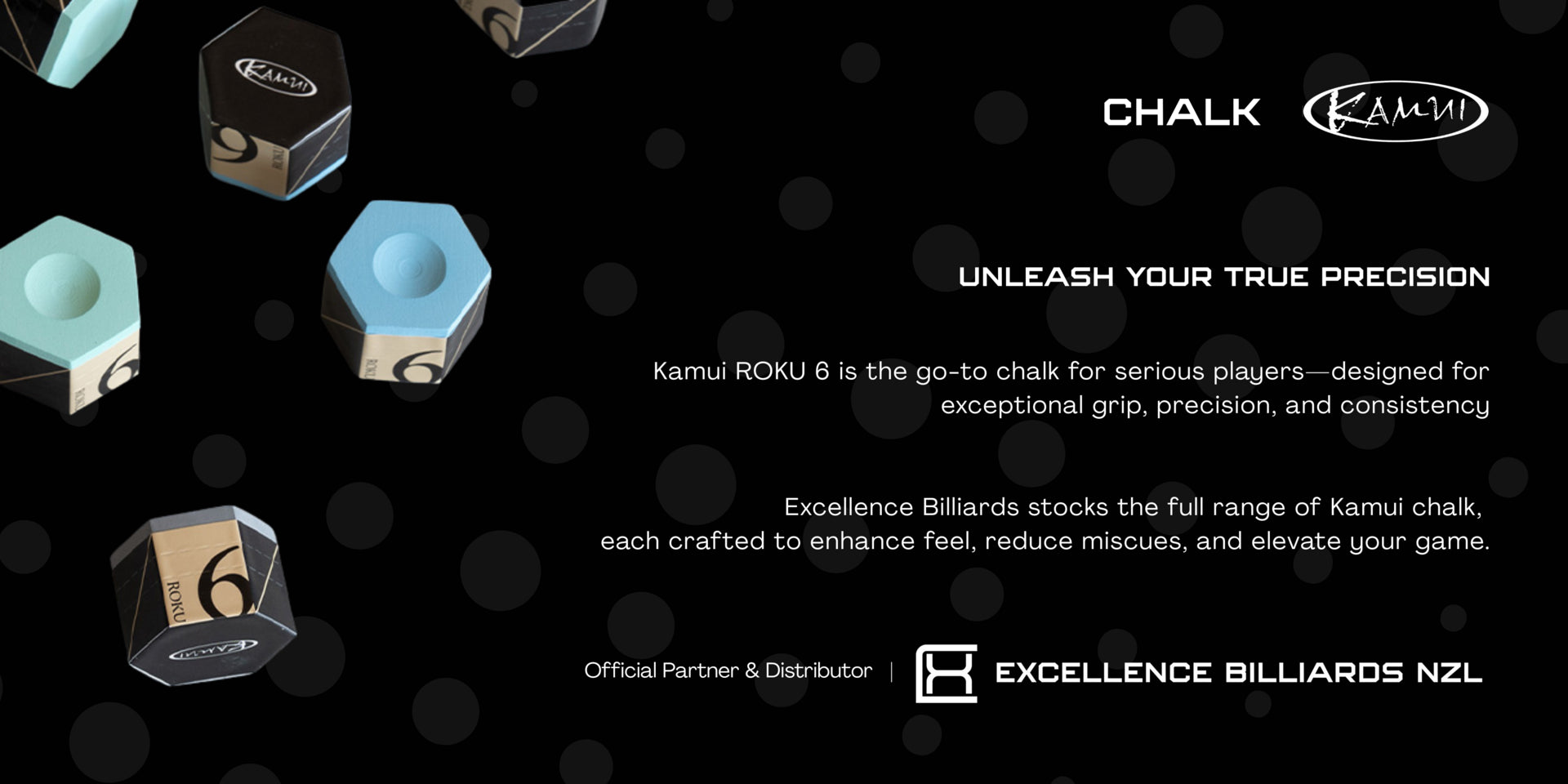 A much-awaited technologically advanced pool cue chalk is finally here. Imagine having the ability of the KAMUI Chalk.98ß or 1.21ß but without the mess on the cue ball and without the mess on the felt. The first objective is to ensure high quality chalk, which has grip power, adhesion, and solidity, since those are the most important performan...